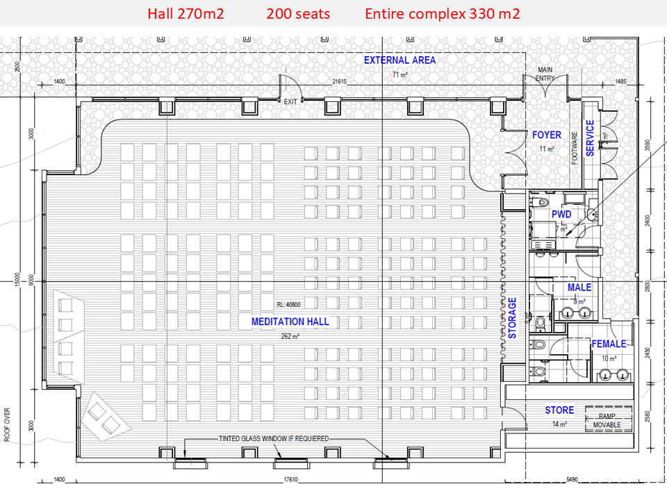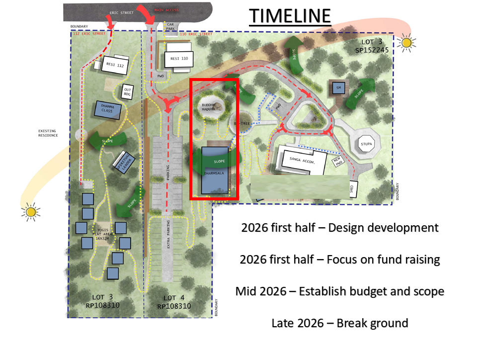The Goodna Temple Meditation Hall is being built and is at the core of every monastery. Here the prayers and pujas will be held, the ceremonies and special events will be celebrated. The architecture of the meditation hall will be traditionally defined. Each and every thing in the new meditation hall will have a special symbolic meaning. The layout of the hall itself will represent the way to enlightenment, reminding us of the necessary steps on the path.
